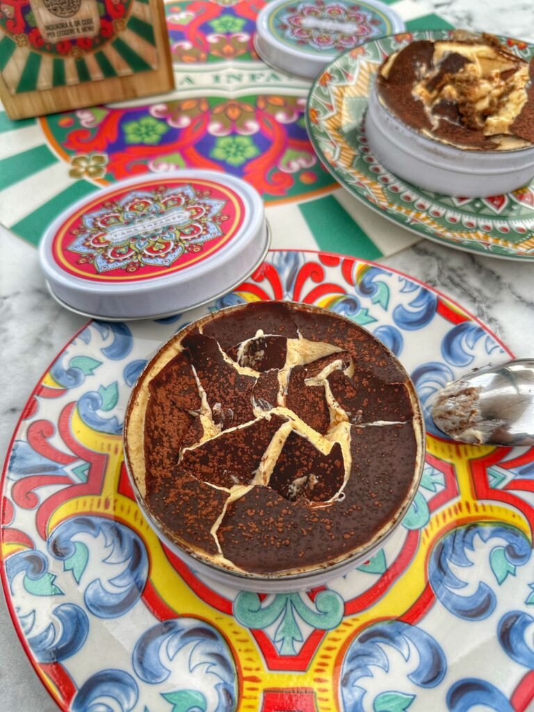 Cofanetto con savoiardi inzuppati al cappuccino, crema al mascarpone e cioccolato croccante da spaccare