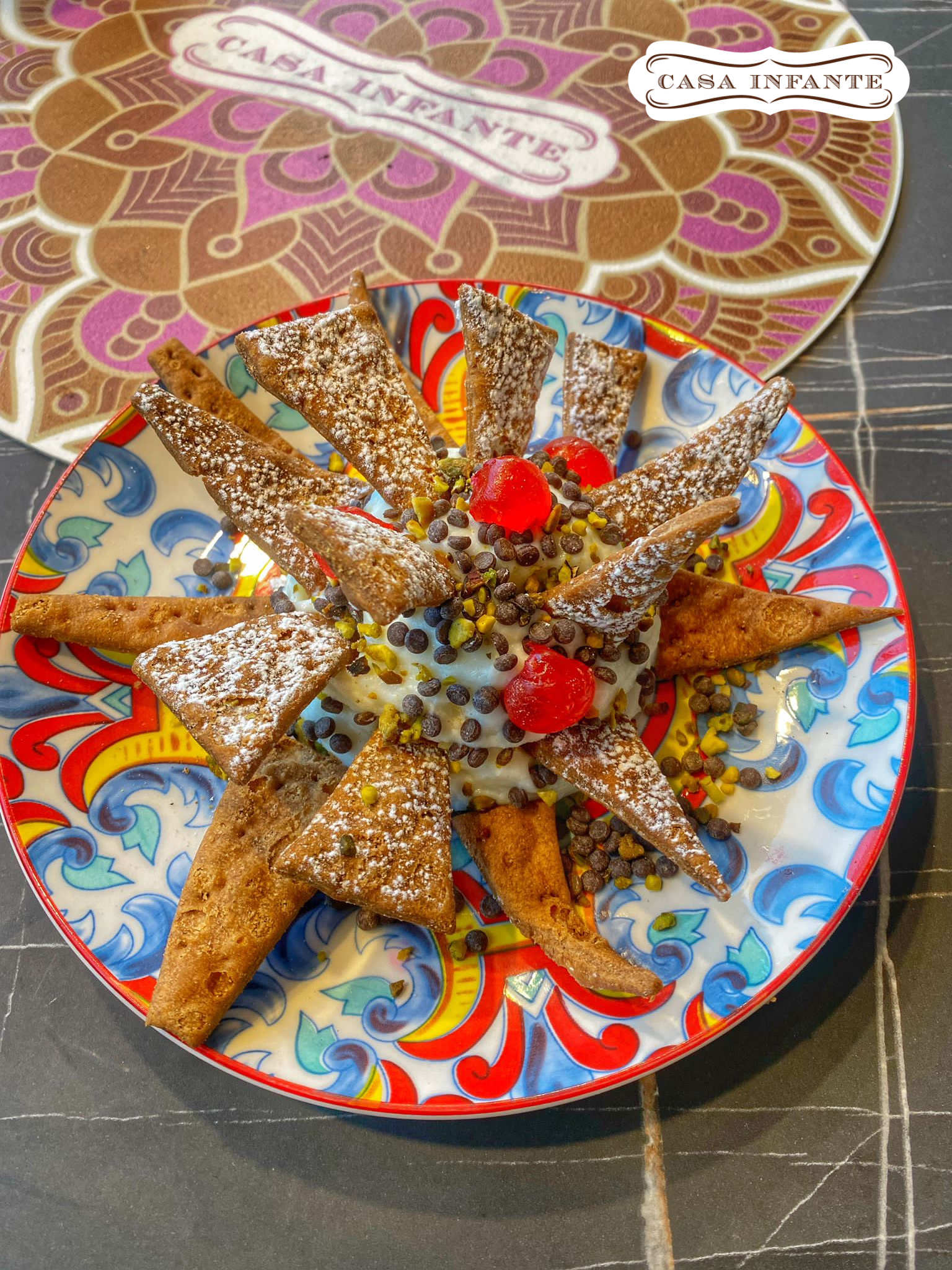 Cannolo Chips Dip Chips di Cialda Cannolo con Crema di Ricotta, Goccine di Cioccolato e Granella di Pistacchi
