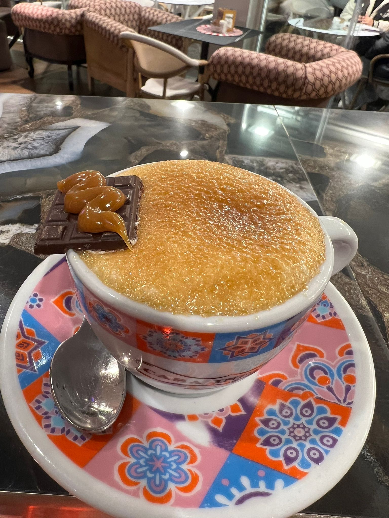 Caramello filante, cioccolata calada extra fondente, crema di latte fredda, zucchero di canna caramellato cioccolatino con caramello